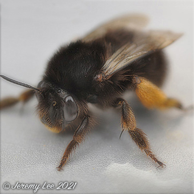 Scientific Name: Anthophora plumipes Common Name: Hairy-footed Flower Bee Anthophora plumipes, commonly known as the Hairy-footed Flower Bee, is a large, bumblebee sized species, that often nests in the soft mortar and exposed cob of old walls. Occasionally it will nest in the ground, preferring bare compacted clay soils. Common and widespread in much of England and Wales, especially in towns, cities and villages. Flies from late February to mid-June, and is extremely fond of visiting Lungwort (Pulmonaria) flowers. The female resembles a small, black bumblebee with orange-red hairs on the hind leg and a swift, darting flight. Shows a marked liking for Lungwort flowers and often approaches the flower with the long tongue extended. The male looks very different to the female, being largely brown with a dark tail (fresh specimens are often quite gingery - see photo above) and are often among the first bees of the year to emerge (sometimes late February). The cream markings on face distinguish it from all other bumblebees and often hovers in front of flowers and when pursuing females. The most likely species to be confused with Anthophora plumipes is the Common Carder-bee, Bombus pascuorum (the commonest of the gingery bumbles) and there is an extremely rare species, Anthophora retusa which could easily be confused with this but it is now absent from virtually the entire UK range of A. plumipes. |