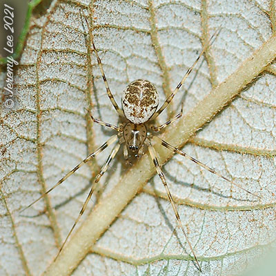 Scientific Name: Drapetisca socialis Common Name: N/A Drapetisca socialis, is a species of spider belonging to the family Linyphiidae. Even among the diminutive spiders in this family, this is a very small species with a body length (excluding legs) of just 3/4 mm. It is usually found motionless on its delicate web, usually built on the trunk of a tree, where its mottled body and banded legs, allied to its tiny size, make it very difficult to see (giving rise to the common name invisible spider). The white on the abdomen varies but the pattern on the carapace is recognisable. This spider is usually found on the lower trunks of trees, particularly Beech. Can be very common and is found over much of Britain. |