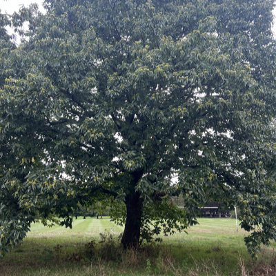 Scientific Name: Castanea sativa Common Name: Sweet Chestnut The Sweet Chestnut, Castanea sativa, is a deciduous tree which can reach 35m when mature and live for up to 700 years. They belong to the same family as oaks and beeches. The bark is grey-purple and smooth, and develops vertical fissures with age. The twigs are purple-brown and buds are plum, red-brown and oval in shape. They can develop vast girths which can reach up to 2m in diameter. The leaves are about 16–28 cm long, 5–9 cm wide and oblong with a pointed tip and a serrated or toothed edge. The leaves are quite glossy and there are about 20 pairs of prominent parallel veins. The flowers consist of long, yellow catkins of mostly male flowers, with female flowers at the base. Sweet chestnut is monoecious, meaning both male and female flowers are found on the same tree. After pollination by insects, female flowers develop into shiny, red-brown fruits wrapped in a green, spiky case. The trees begin to bear fruit when they are around 25 years old. Sweet chestnut is native to southern Europe, western Asia and North Africa. The story of how sweet chestnut trees came to be in Britain is unclear. It has long been thought of as a Roman introduction, but science doesn’t definitively back this up. It may be that sweet chestnut trees are a far more recent introduction. Today can be found commonly throughout the UK in woods and copses, especially in parts of southern England where it is still managed to form large areas of coppice. |