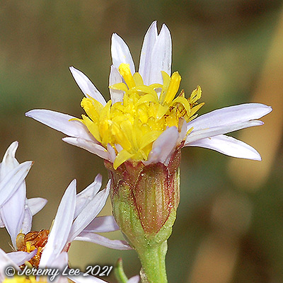 Scientific Name: Tripolium pannonicum Common Name: Sea Aster Tripolium pannonicum, more commonly known as Sea Aster, is a flowering plant confined in its distribution to salt marshes, estuaries and occasionally to inland salt works. It is a perennial, growing up to 50 cm tall with fleshy lanceolate leaves and pale purple-blue (sometimes nearly white, as in photos above) ray florets, flowering from July to September. The plants tend to be short-lived and populations need significant new recruitment each year from new seedlings. There are rayed as well as rayless varieties and only the former have long blue or white florets. The rayless form is yellow. The plant flowers well into autumn and hence provides a valuable source of nectar for late-flying butterflies such as Painted Lady and Red Admiral. |