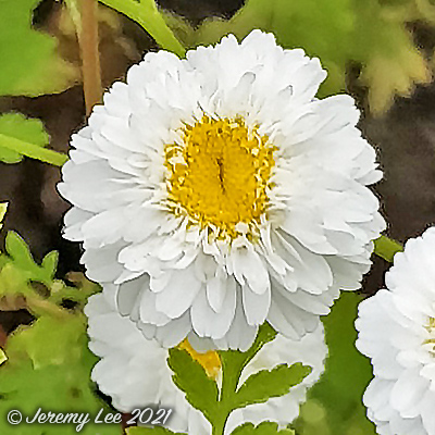 Scientific Name: Tanacetum parthenium Common Name: Feverfew Tanacetum parthenium, more commonly known as Feverfew, is a flowering plant in the daisy family, Asteraceae, commonly cultivated as an ornamental plant. It is a short-lived bushy perennial with pungently aromatic, ovate, pinnately lobed leaves and daisy-like flowerheads 2.5cm across, with white rays and yellow disk florets in summer. It is widely naturalised in gardens, on walls, waysides, tips and waste ground. It seeds freely, but has a poorly formed pappus, and disperses for only short distances; it is therefore most frequent near habitation. |